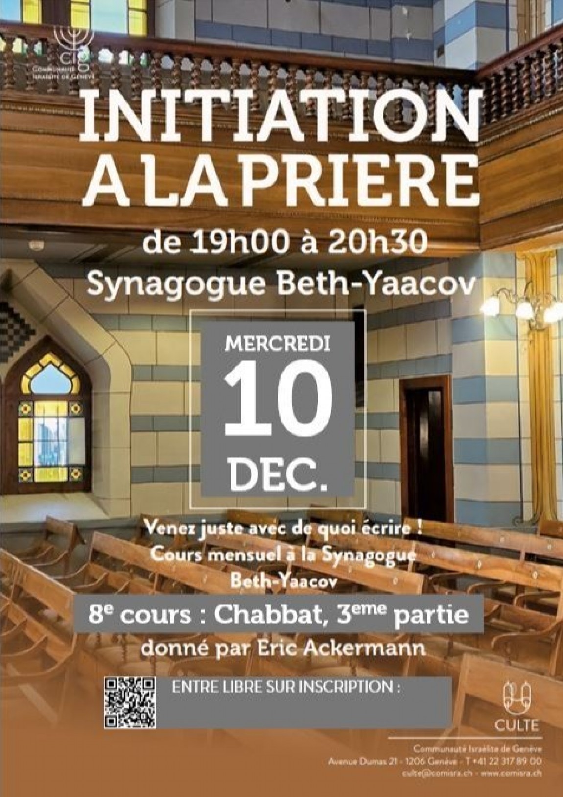 Cours mensuel à la synagogue Beth Yaacov Venez avec de quoi écrire ! ENTREE LIBRE SUR INSCRIPTION : Inscription Infomaniak : urlr.me/NfmAB4 |
