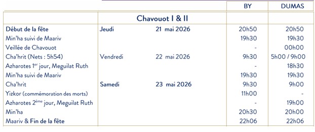 00h00 Veillée de Chavouoth Synagogue Av. Dumas