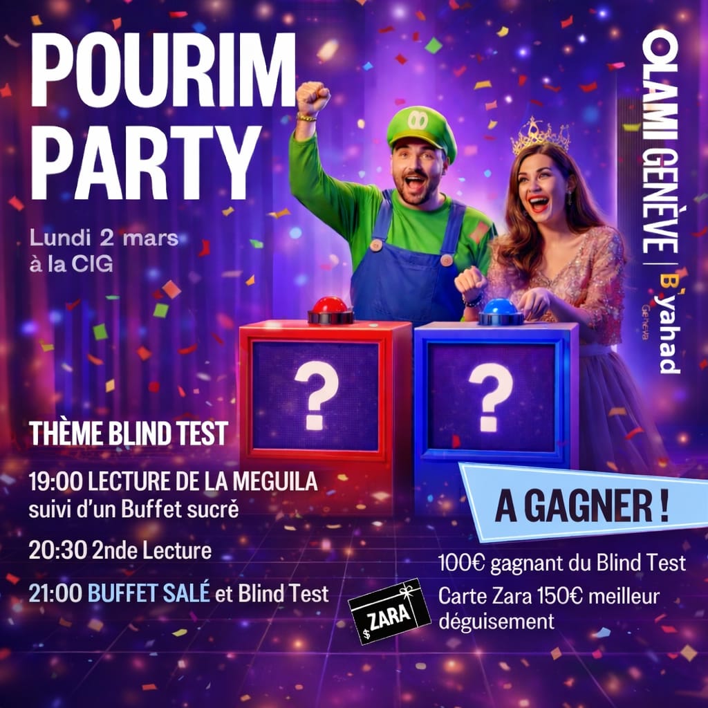 👉Durant la lecture de la Méguila, nous souhaiterions fermer le CCJJ, afin que le buffet et la salle restent intacts et prêts pour l’arrivée des jeunes après la lecture.