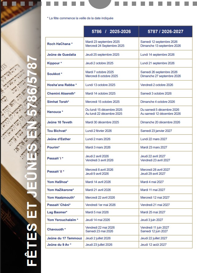11 et 12 Tichri 5786 – 3 et 4 octobre 2025